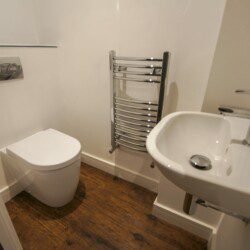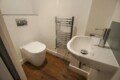 A handy separate WC with a sink, heated towel rail, and toilet.