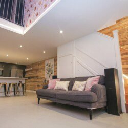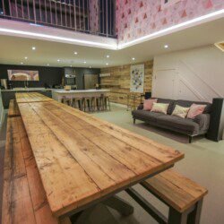 A fantastic social space, the large dining table seats up to 28 guests (20 comfortably), making it perfect for a hen brunch, group dinner, or games night. The drinks trolley is ideal for mixing up cocktails before heading out!